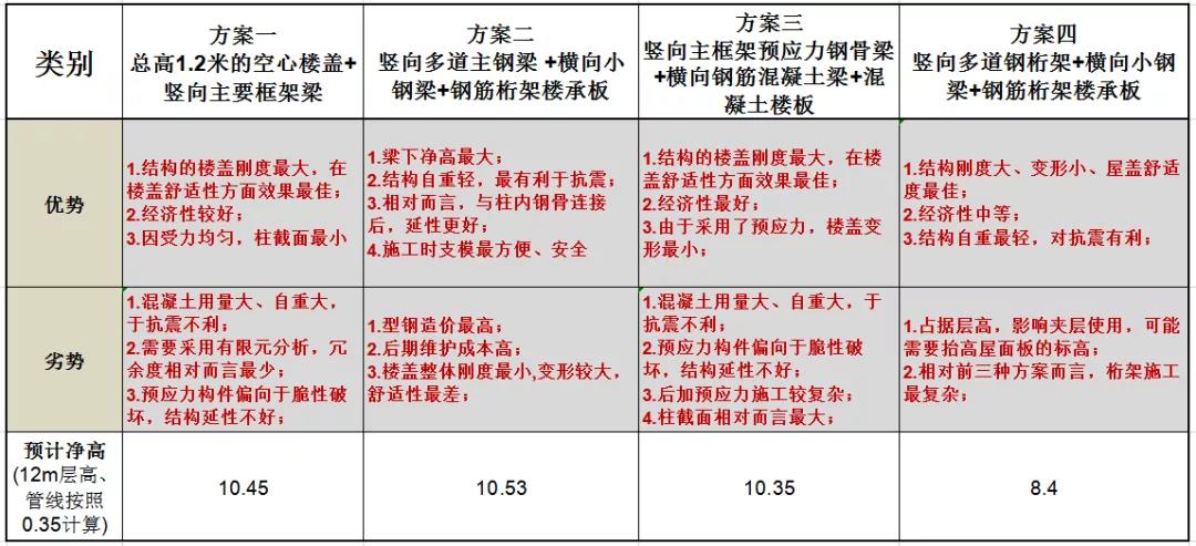 擬采用的樓蓋形式各方案優(yōu)缺點比較示意圖
